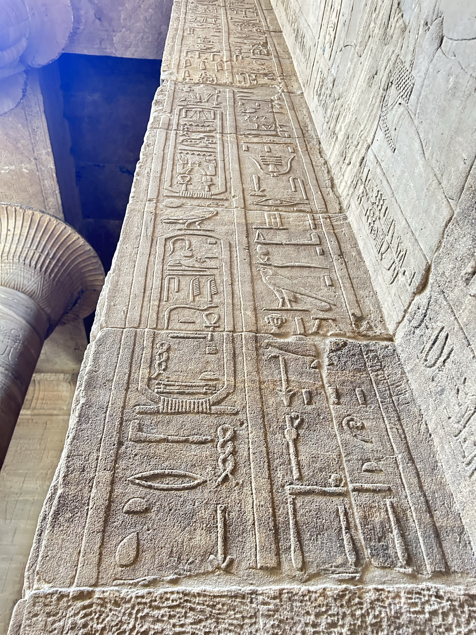 Our first destination was the Philae Temple on an island on Lake Nasser. The temple was relocated in the 1960s due to the construction of the Aswan High Dam, which aimed to control flooding in Lower Egypt. There was evidence of water damage in the discoloration on some of the walls due it’s 15 year immersion under water. While some temples were successfully relocated, others, unfortunately, remained submerged. What an adventure it would be to dive to these for exploration. Unfortunately, recreational diving is not permitted and would be too dangerous due to the presence of Nubian crocodiles.