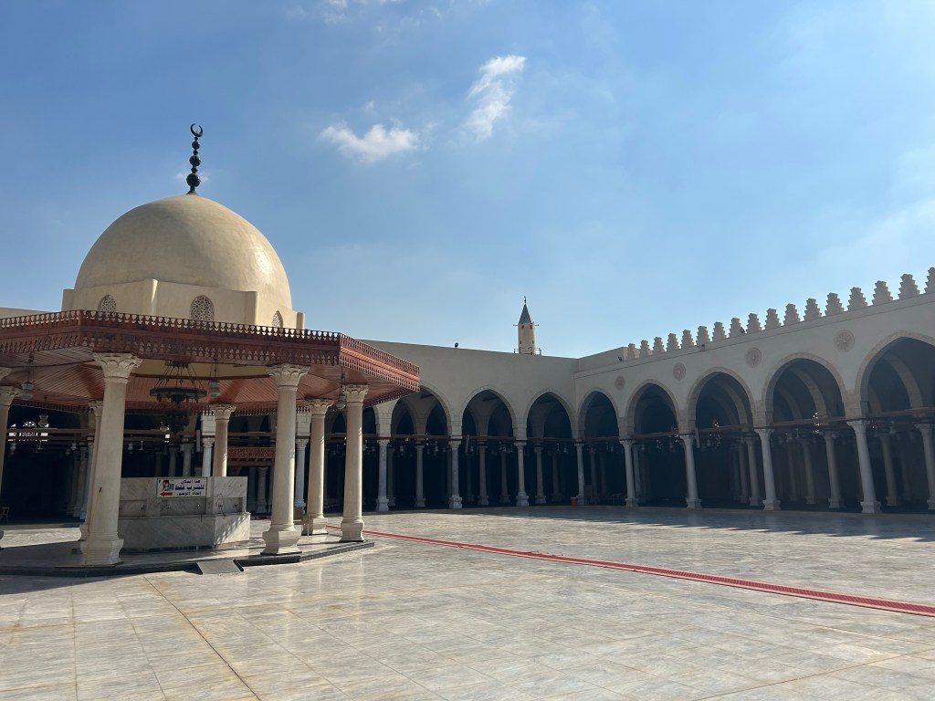 Next, we visited the Amr Ibn al’As mosque, the first mosque built in Egypt and Africa. We had to remove our shoes to enter, and I donned the headscarf I brought. Inside, it was very open, with a few chairs towards the back, where we sat and learned about Islam. Prayers start at 5 AM and occur another four times throughout the day. When it’s time for prayer, the Adhan is broadcast loudly, guiding Muslims to pray in the direction of the Kaaba in Mecca, Saudi Arabia. The Adhan, sung by muezzins (similar to a priest of a church) at countless mosques across Egypt, is a sound that echoes and is impossible to ignore. It’s somewhat akin to the church bells I hear in Germany, but far more audible. Imagine my startled morning awakening by this call to prayer at 5am this morning with no clue what it was! Not knowing much about Islam before this trip, experiencing the Adhan firsthand and learning about the religion has been a fascinating part of my journey.