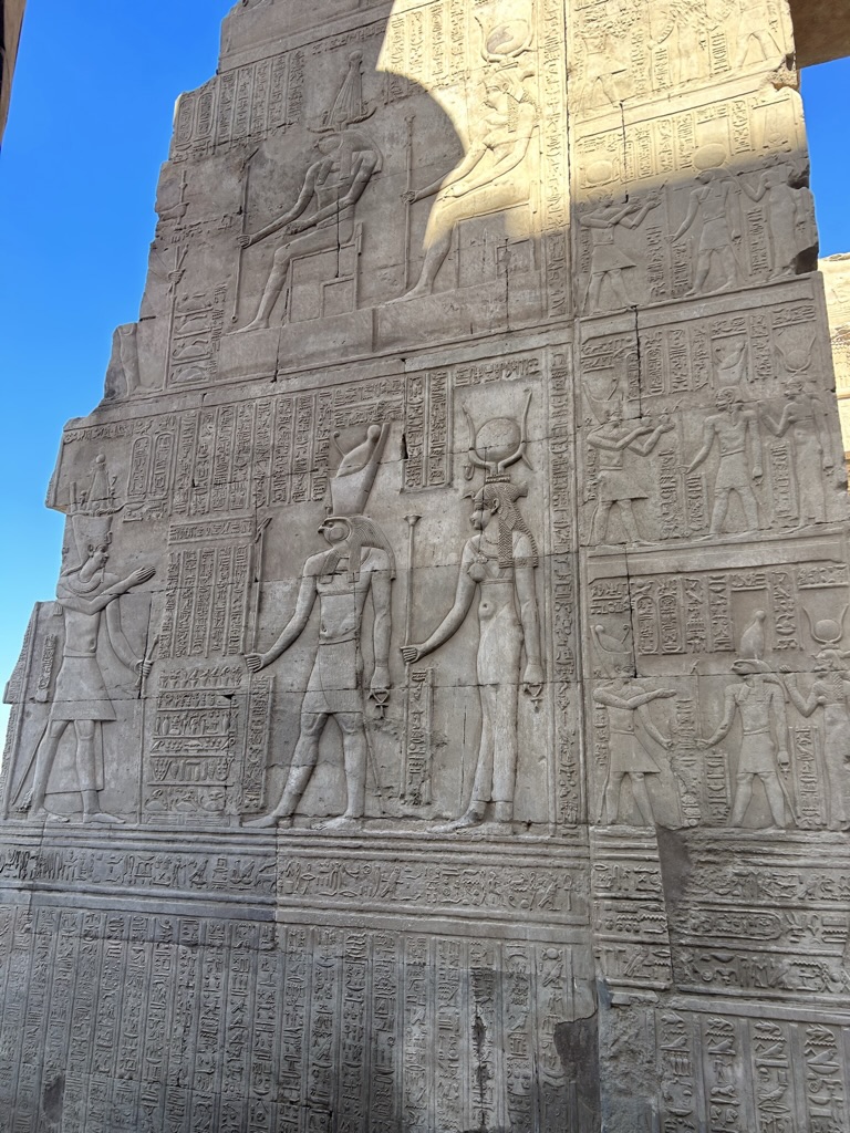 Philae Temple comprises several smaller temples adorned with intricate wall carvings depicting mythological scenes such as Isis resurrecting her husband Osiris, giving birth to Horus, and performing rituals like mummification. The temple’s setting amidst the blue waters of the Nile adds to its mesmerizing beauty. If you’re ever in Egypt, Philae Temple is a definite must-visit and probably one of my favorite parts of the trip!