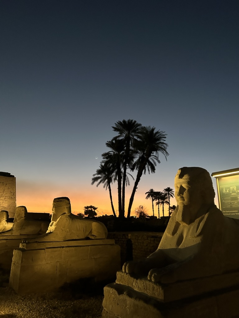 Later, with free time at the hotel, Sourabh, Sylvia, and I shared a bottle of wine, before visiting the Luxor Temple in the evening. We marveled at the avenue lined with miniature sphinxes used for ceremonial processions from temple to temple.