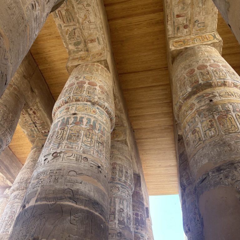 Today, we visited the Karnak Temple, dedicated to the worship of three gods. The temple was enormous, with vibrant colors still visible at the tops of the pillars where it was more sheltered. Interestingly, the sphinx avenue from yesterday leads directly to this temple. The site was quite crowded, and feeling a bit ‘templed out,’ we quickly moved on to our next activity.