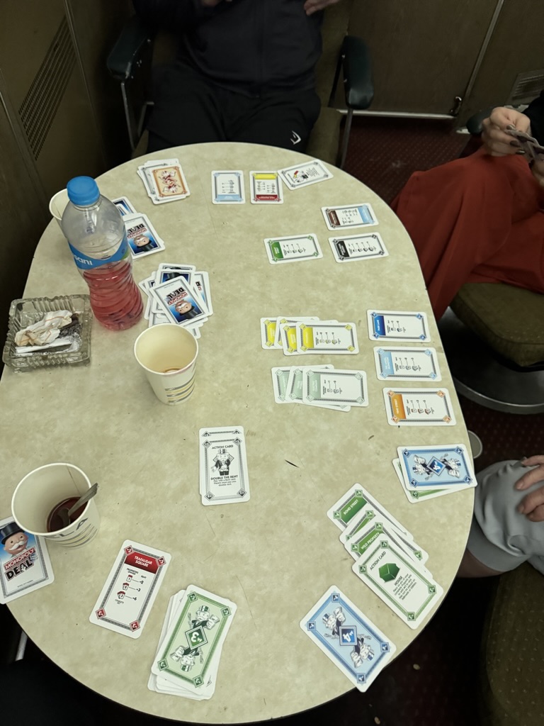 Later in the evening, our group met and had tea and played card monopoly brought by Phil in our group. It was our game for the trip. I was so happy to be with other game lovers. Besides all of us smelling like cigarettes by the end of the evening it was fun. The rocking of the train then seemed to sway us right to sleep.
