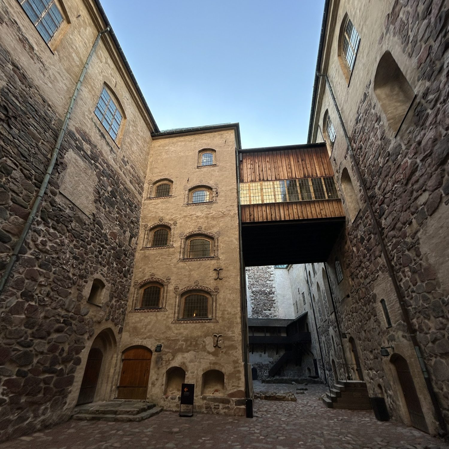Next, we scootered to Turku Castle and grabbed a quick bite at the café before touring the museum. The castle’s construction began in the late 13th century and expanded until the 1500s when it reached its current size. From the outside, it doesn’t look particularly grand, but once inside, it’s incredible! The museum is vast and detailed, covering the castle’s history, the people who lived there, artifacts from various eras, and showcased fully furnished rooms. We only had an hour and a half before it closed, which wasn’t nearly enough time to explore everything! Another cool aspect was seeing that they host events like weddings—they were even setting up for one as we passed through.
