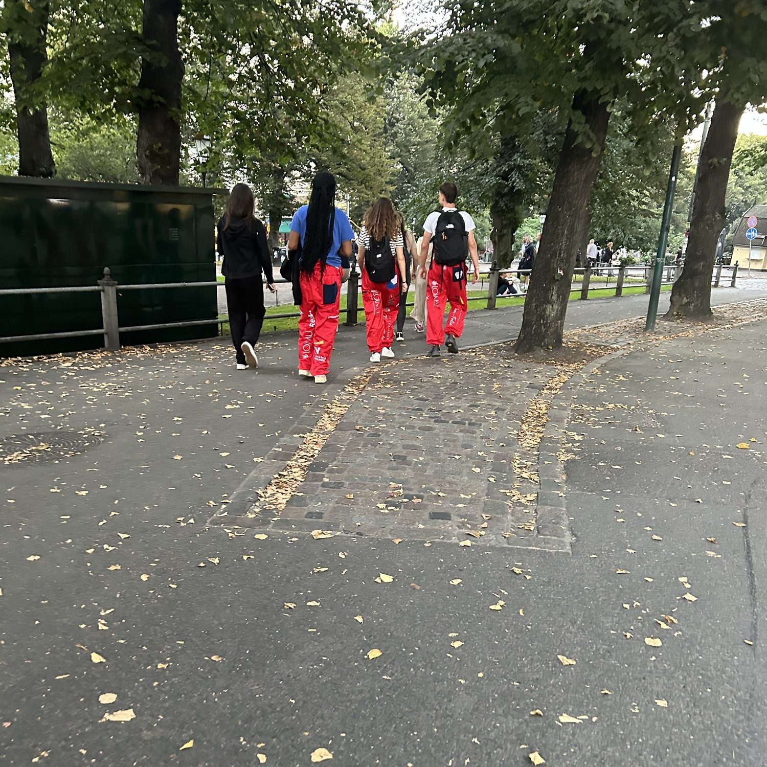 Later that evening, while looking for a restaurant, we noticed many university students wearing different-colored jumpsuits. Curious, we asked a group of them about it, and they explained that the colors represent different majors—yellow for business, purple for engineering, turquoise for dentistry, and so on. The students collect badges throughout their studies and sew them onto the jumpsuits themselves. These jumpsuits are worn to all school events and parties, and they’re not supposed to be washed, which can be a problem when alcohol is involved! If they throw up on their jumpsuit, the can only clean it by jumping into the Aurajoki river with dirty water to wash it. I bet university life is a lot of fun here, especially with all of the traditions.