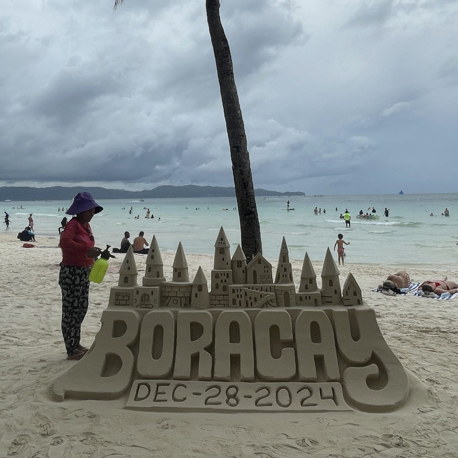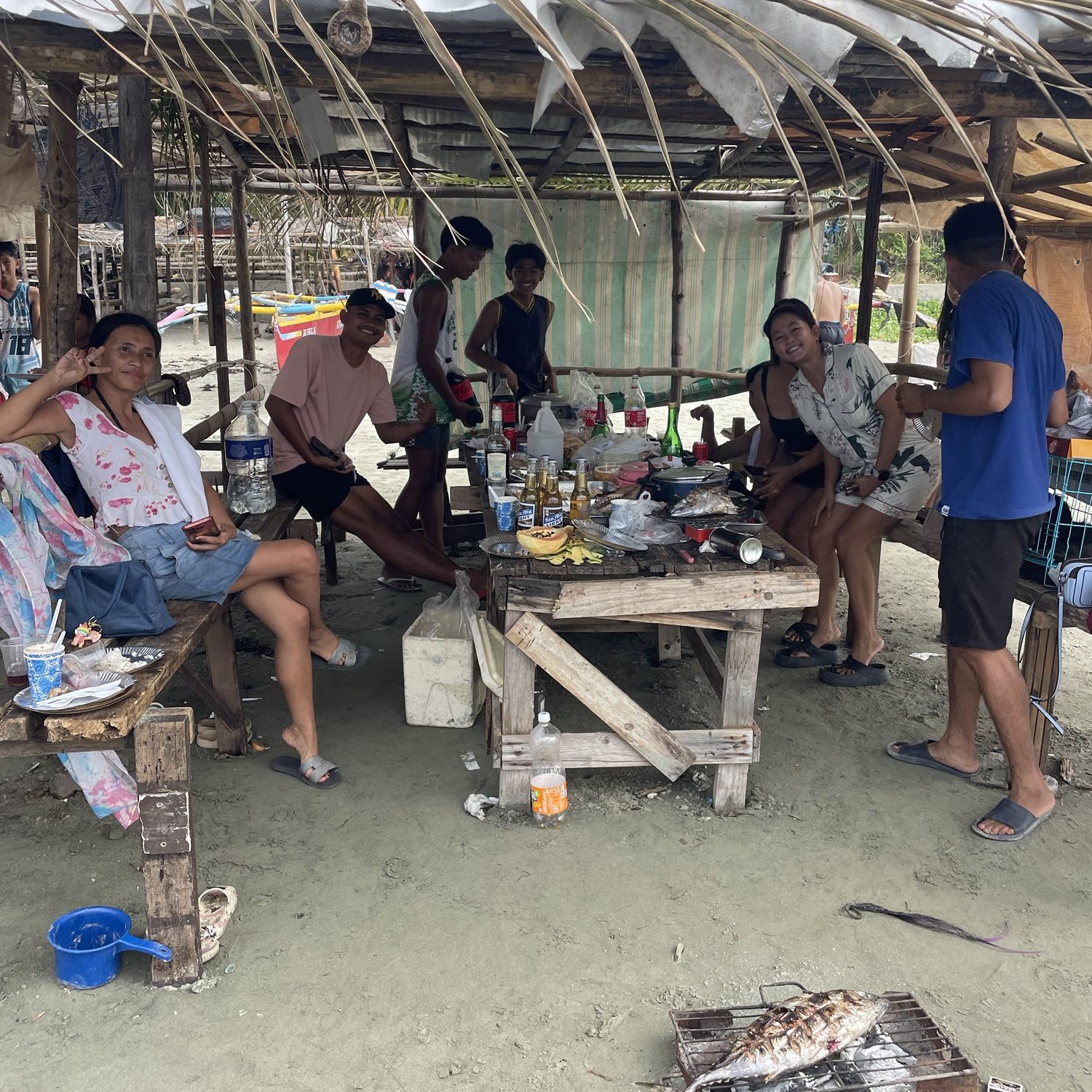 As we strolled down the left side of the beach, a guy and his mom, both locals, approached us. He offered us tequila, and at first, we were a bit skeptical, but they turned out to be genuinely kind and welcoming! They kept saying thank you for visiting the Philippines. After chatting for a bit and taking some photos together, they invited us over to their cabana, where they shared more drinks and food. They were also on Christmas vacation, visiting from Manila, where they live and work.