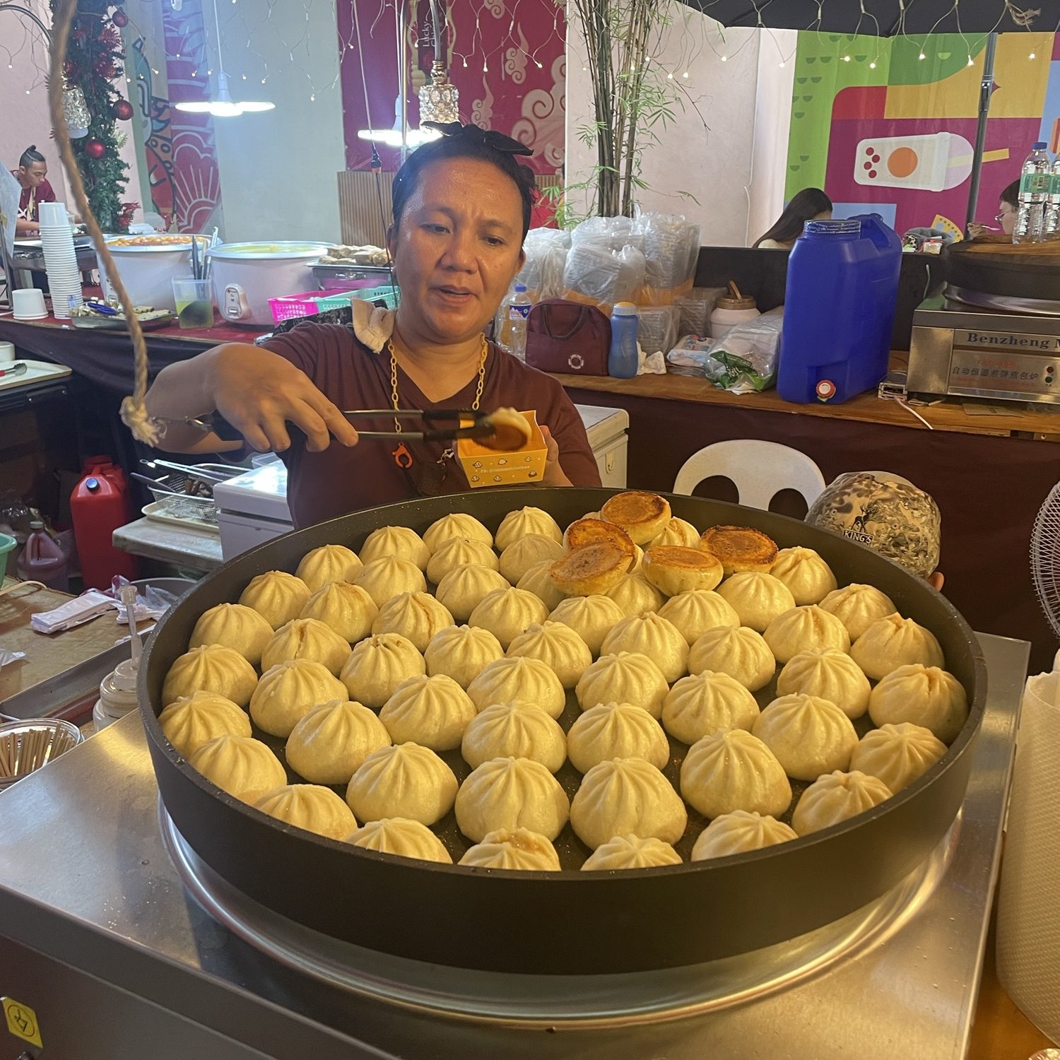 After taking the metro, we arrived at a spot where we enjoyed some delicious custard pastries. They reminded me of the ones you’d find in Portugal, yum! Our next food stop was so tasty: Fried Siopao, steamed buns filled with pork. This was by far the best dish of the day, and I’d love to learn how to make them myself!