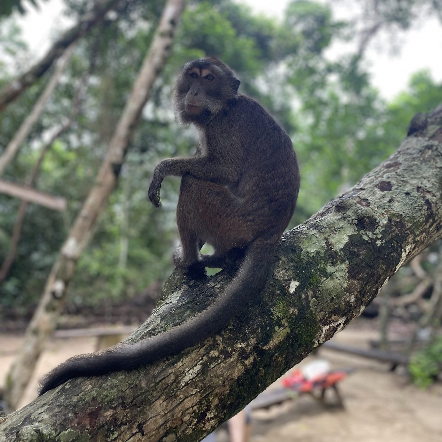 Finally, we boarded the spider boats and cruised over choppy waters to a different part of the island. Once on shore, we raced through the trees, only to—surprise, surprise—end up in yet another line. This time, it was to board the boat that would take us through the caves. While waiting, we took pictures of some monkeys roaming the path, which was honestly one of the highlights of the day.