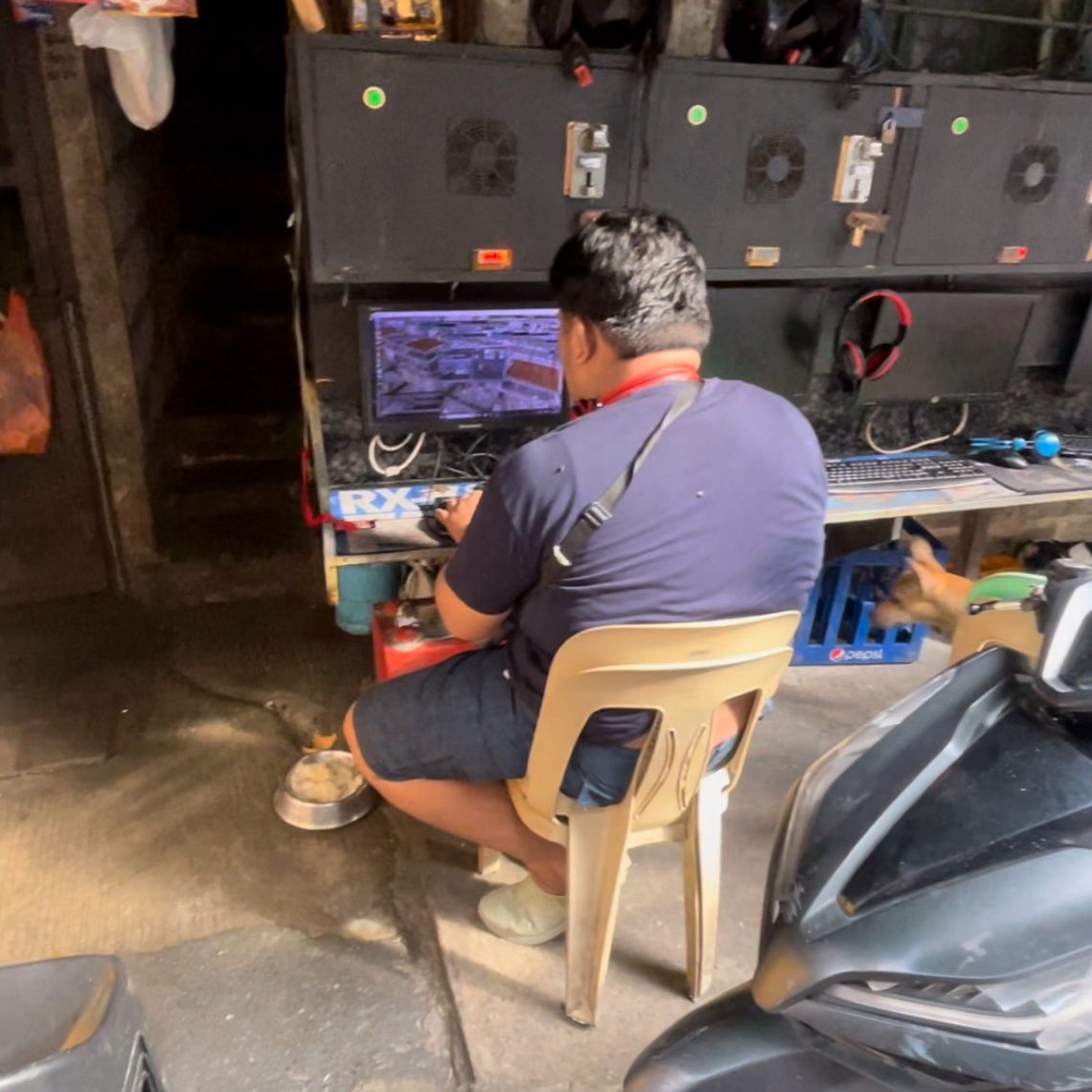 Further down the alley, we stumbled upon a “computer shop” or rather, a small street corner with computer setups where a man was playing video games. It was cool to see as he played right there on the sidewalk, sitting on a tiny stool. We noticed that these little computer “shops” were everywhere, as we saw a couple more as we continued. People were watching movies on some more screens at the next one.