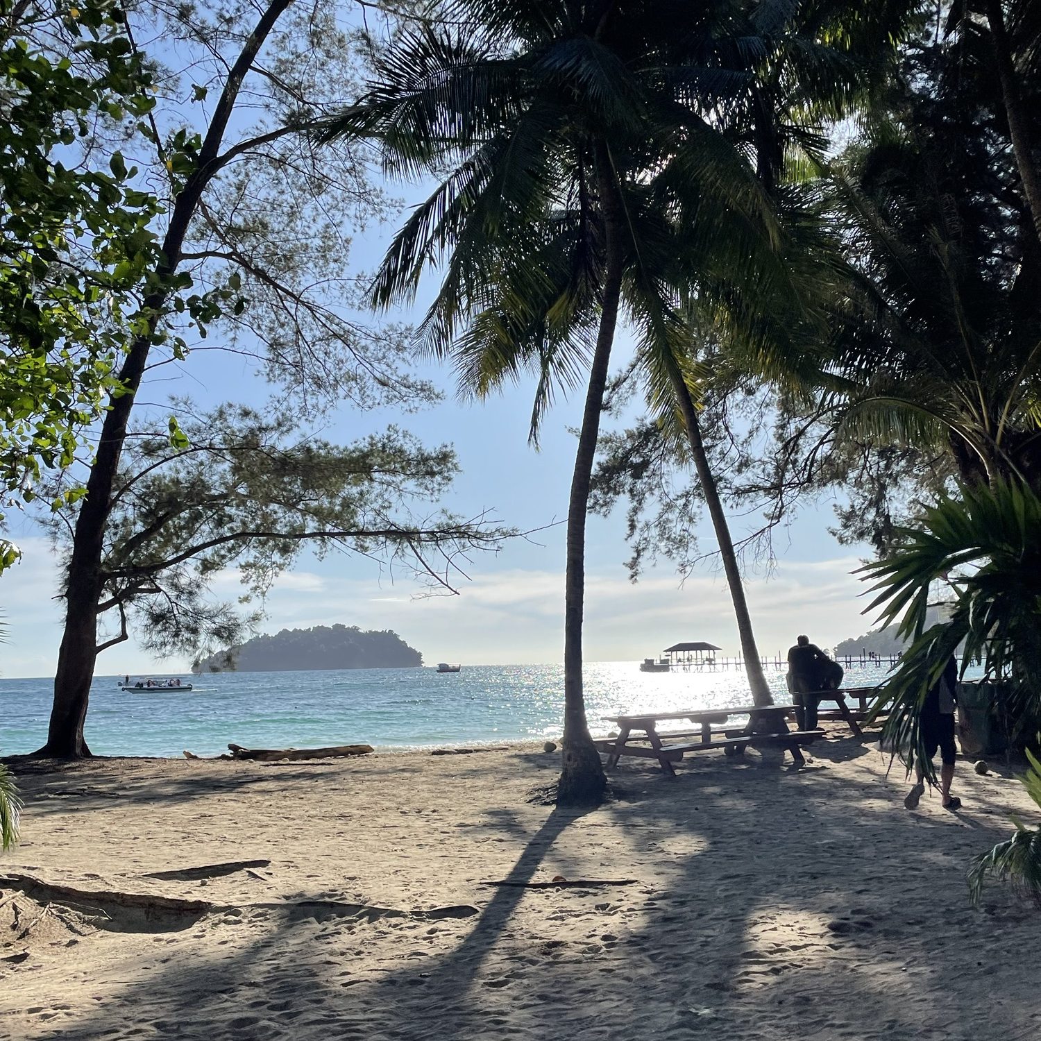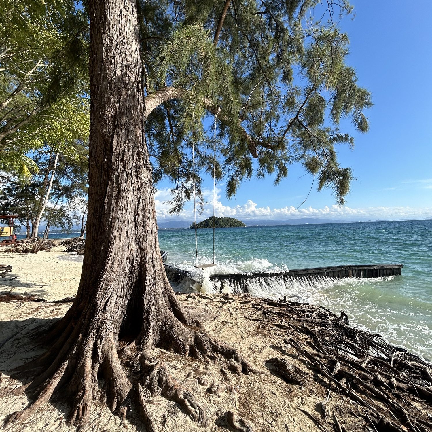 Hoping to grab some food and maybe a drink, we headed to the island’s only restaurant, only to find out it was exclusive to hotel guests. That was surprising, especially since only two tables were occupied. Oh well! Instead, we explored the entire island, collecting a few mosquito bites along the way, before making our way to the beach. The water was warm, as it had been throughout the trip, but unfortunately, there was a lot of trash. It kept floating by and even bumping into me, that was sad to see.