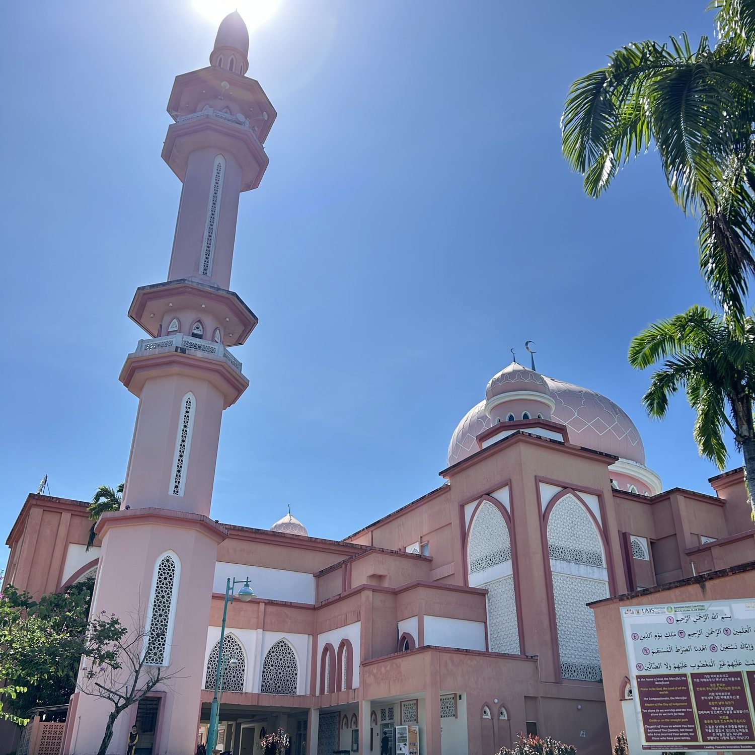 Stepping off the boat, we weren’t quite sure how to spend the day. Half of us were eager to explore the city, while the other half wanted to get out on the water. So, we decided to do both. As we wandered further along the port, we came across a building filled with tour companies. After browsing our options, we found a city tour that covered all the major sights in just a few hours. It seemed like a good deal and a perfect way to start the day. Our first stop was the Kota Kinabalu City Mosque (Masjid Bandaraya).