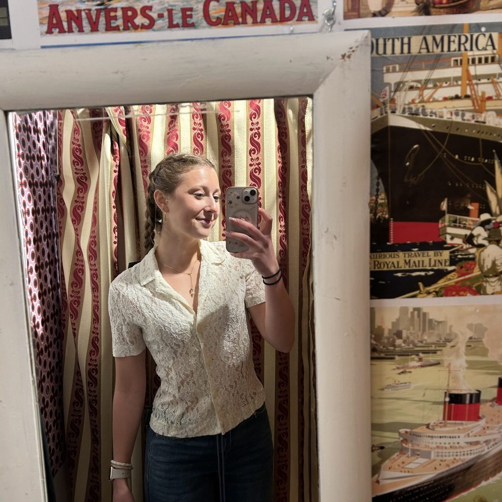 By then, the rain had nearly stopped, so we started hopping from place to place for a little thrifting. We visited about four different stores and had a blast trying on outfits. I think each of us found at least one gem to take home!